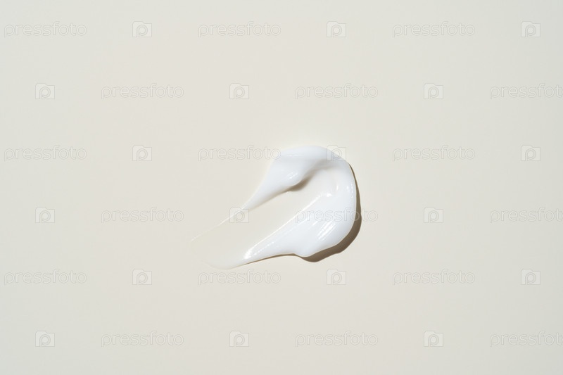 Гладкий мазок крема на мягком бежевом фоне, показывающий его богатую текстуру для продуктов по уходу за кожей