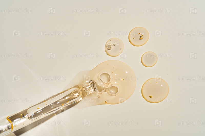 Вид сверху макета стеклянной капельной бутылки с косметической пипеткой на модном бежевом фоне.Жестокий солнечный свет выделяет премиальную упаковку органического косметического продукта для брендинга чистой косметики