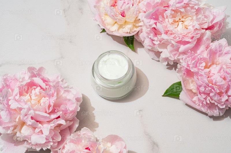 Профессиональный снимок из открытой банки с кремом пионного акцента, подчеркивающим текстуру формул электронной коммерции и содержание дизайна упаковки
