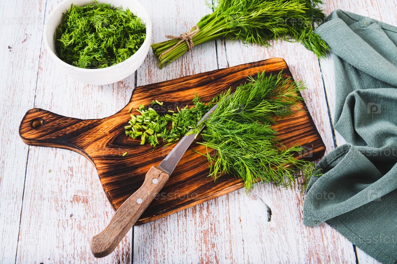 Нарезанный свежий уксус и нож на режущей доске на столе