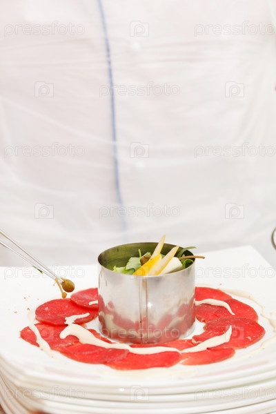 Шеф-повар готовит карпаччо