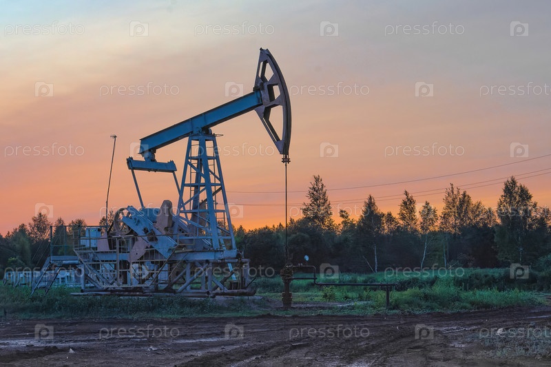 Добыча нефти на месторождении. Извлечение нефти из образования с помощью катушки. Строительство катушки. Лето. Красивое небо и природа