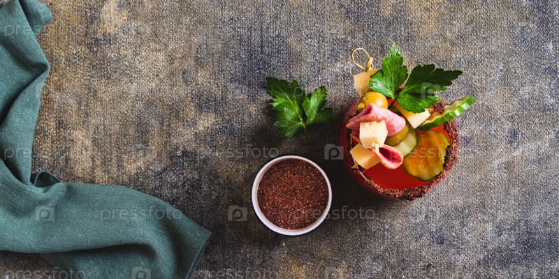 Новый гастрономический тренд закусок в стакане на столе верхний тип веб-баннера