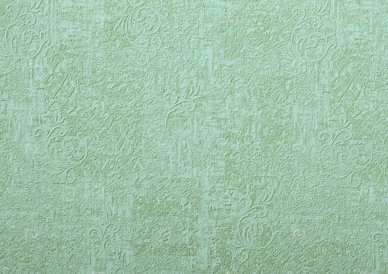 Фон зеленой обои или гипсовой стены с винтажным завитками