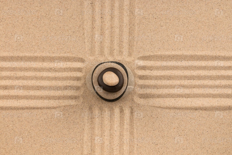 Пирамида из камней стоит на полосатом песке как фон