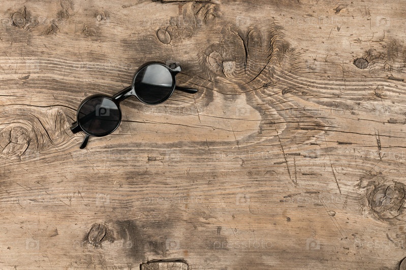 Стильные современные очки лежат на старой деревянной поверхности