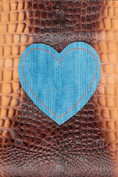 Сердце джинса лежит на коже крокодила.Пространство для текста