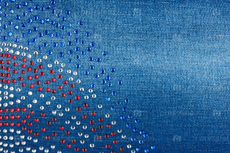 Джинсовая ткань инкрустирована кристаллами