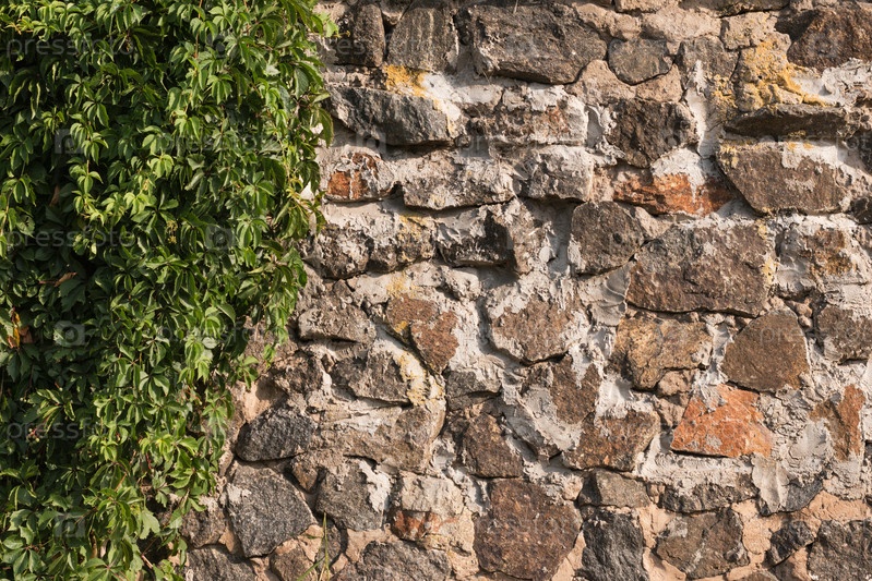 Старые стены из мощеного камня и винограда, освещённые утренним солнцем