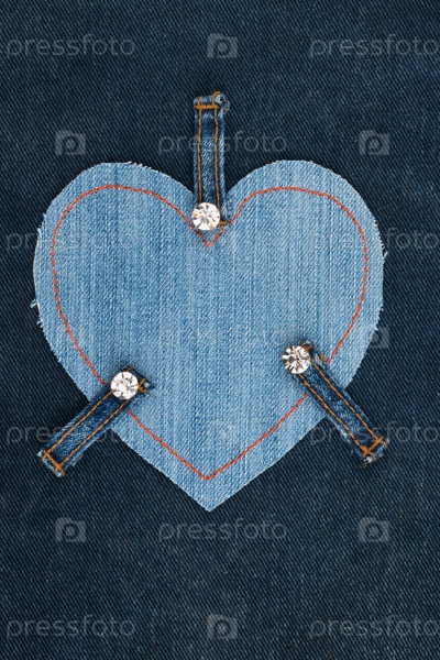 Рама джинсов в форме сердца, лежит на джинсовой ткани