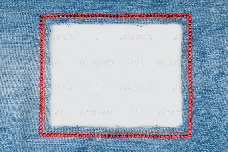 Рама сделана из джинса с красными стеклами на белом фоне