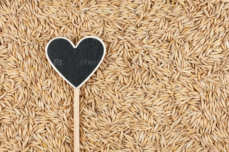Знак в форме сердца лежит на овсяных зернах