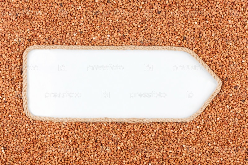 Показатель изготовлен из веревки с зернами гречихи, лежащими на белом фоне