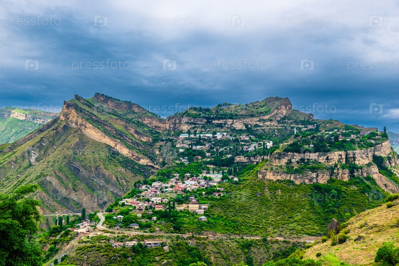 Драматический пейзаж живописного плато Гуниб в бурную погоду на Дагестанском высокогорье.Северный Кавказ.Россия