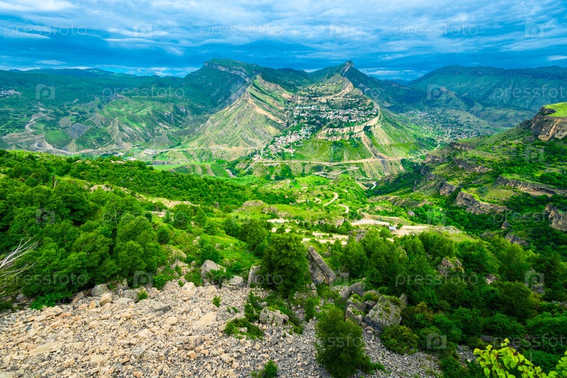 Горный пейзаж живописной горной деревни Гуниб.Дагестан