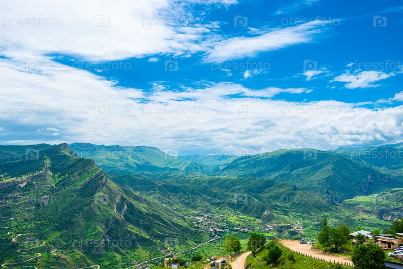 Потрясающий горный пейзаж в зеленой горной долине.Дагестан Кавказ
