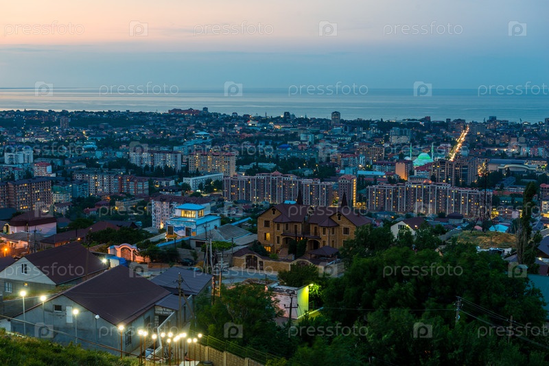 Вечерний вид на прибрежный город Махачкала с смотровой площадки горы Тарки-Тау