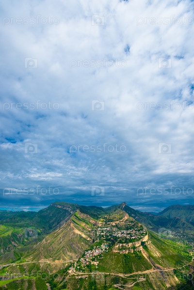 Драматический пейзаж живописного плато Гуниб в бурную погоду на Дагестанском высокогорье.Северный Кавказ.Россия