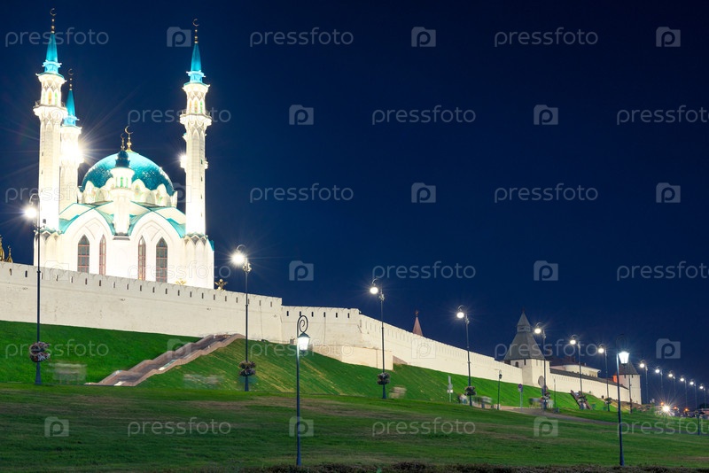 Живописный ночной вид мечети Куль Шариф Казанского Кремля