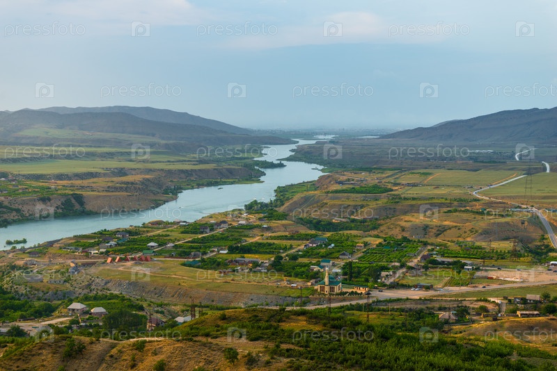 Живописный пейзаж долины реки Сулак в Северо-Кавказских горах Дагестана