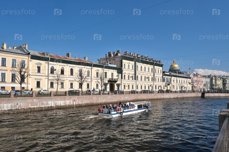 Вид на собор святого Исаака и мост почтового отделения с набережной реки Мойка