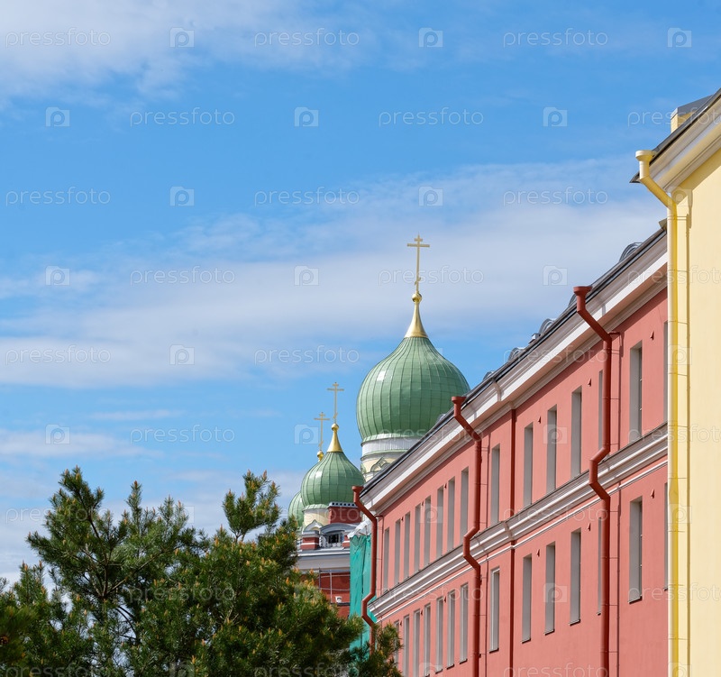 Купола церкви Святого Исидора в красивый солнечный день, Санкт-Петербург, Россия