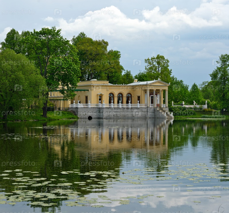 Царицынский павильон у Ольгинского пруда, Петродворец (Петергоф, Санкт-Петербург, Россия), летняя слава, зеркальное изображение