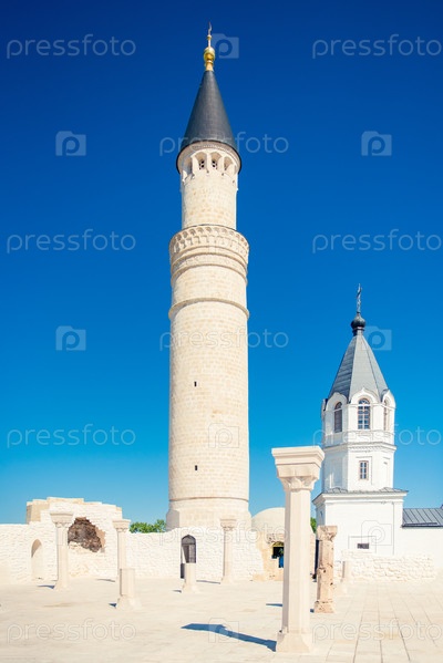Древняя колонна Белой соборной мечети с Большим минаретом Болгар.Россия