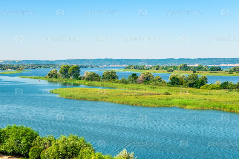 Живописный пейзаж Потопа Волги и зеленых островов на нем.Россия