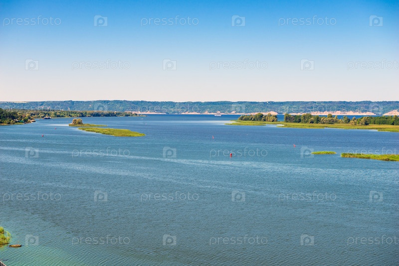 Живописный пейзаж Потопа Волги и зеленых островов на нем.Россия