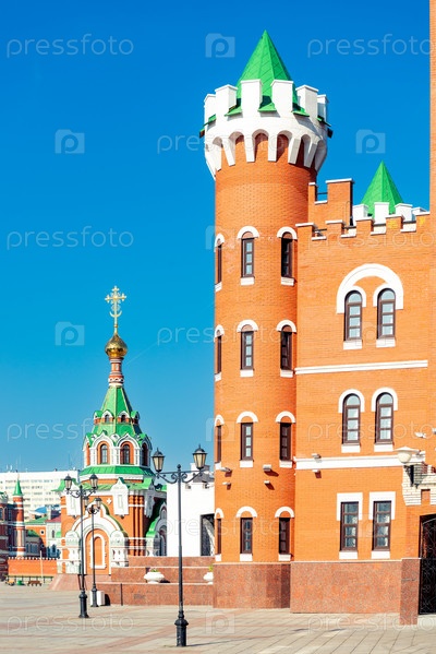 Башня Республиканского кукольного театра в Йошкар-Оле и часовня Петра и Февронии из Мурома