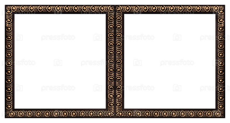 Двойная деревянная рама (диптих) для картин, зеркал или фотографий, изолированных на белом фоне