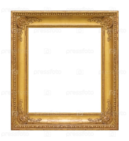 Золотая рама для картин, зеркал или фотографий, изолированных на белом фоне