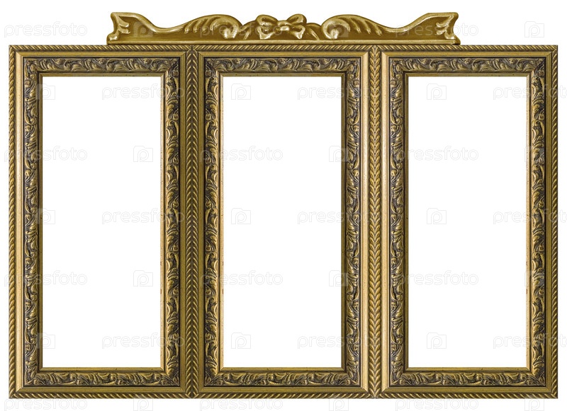 Тройная золотая рама (триптих) для картин, зеркал или фотографий, выделенных на белом фоне