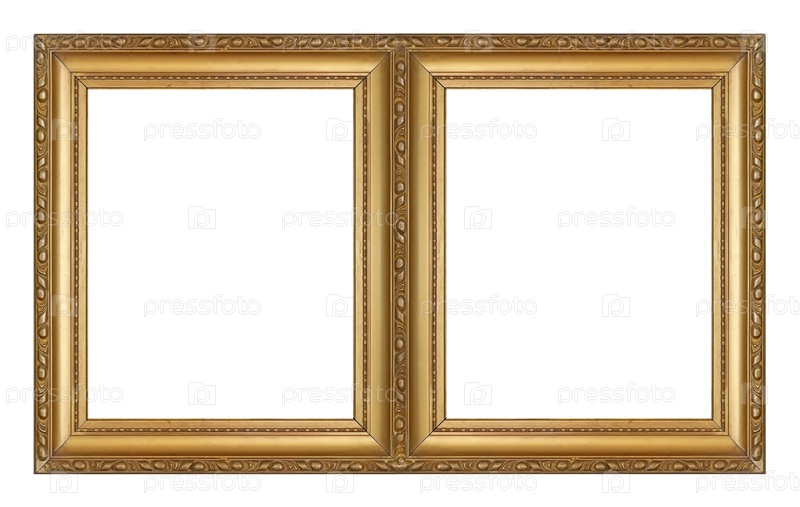 Двойная золотая рама (диптих) для картин, зеркал или фотографий, изолированных на белом фоне