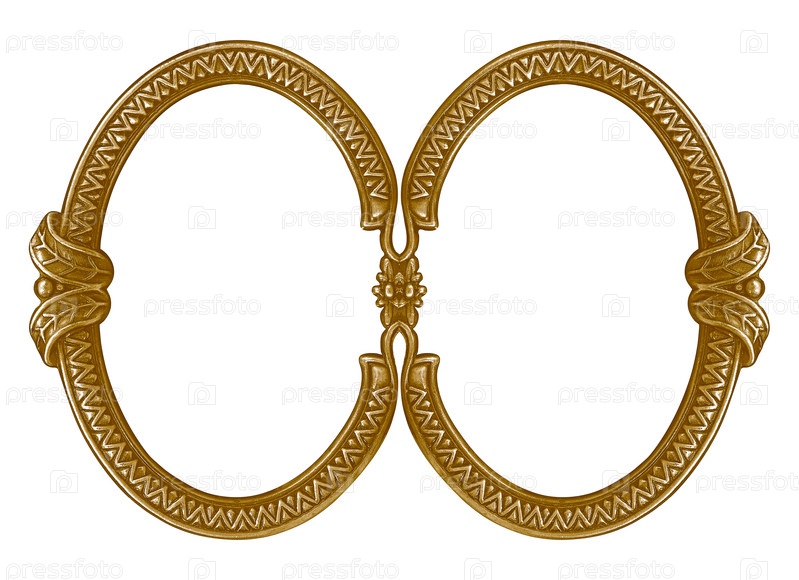 Двойная овальная золотая рама (диптих) для картин, зеркал или фотографий, выделенных на белом фоне