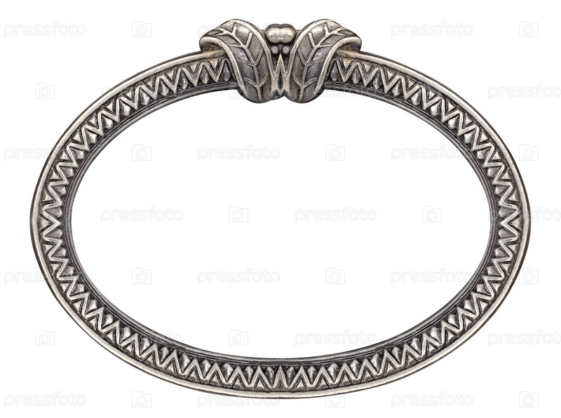Серебряная овальная рама для картин, зеркал или фотографий изолирована на белом фоне