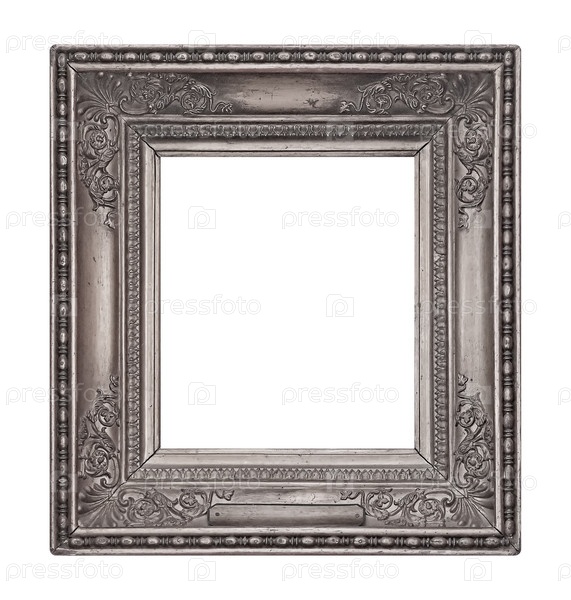 Серебряная рама для картин, зеркал или фотографий, изолированных на белом фоне