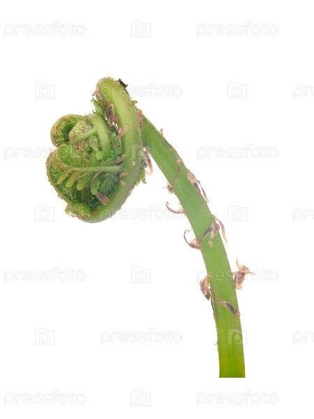 Молодой раскачивающийся папоротник изолирован на белом фоне, отрезка готова