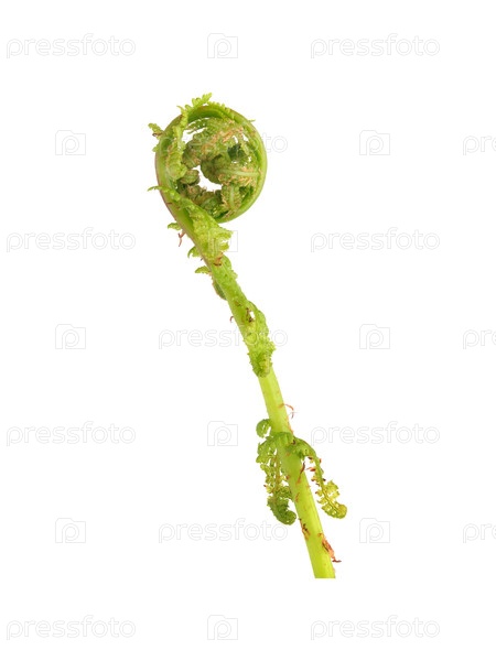 Молодой раскачивающийся папоротник изолирован на белом фоне, отрезка готова