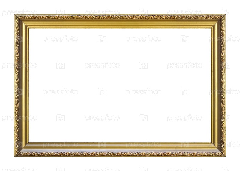 Золотая рама для картин, зеркал или фотографий, изолированных на белом фоне