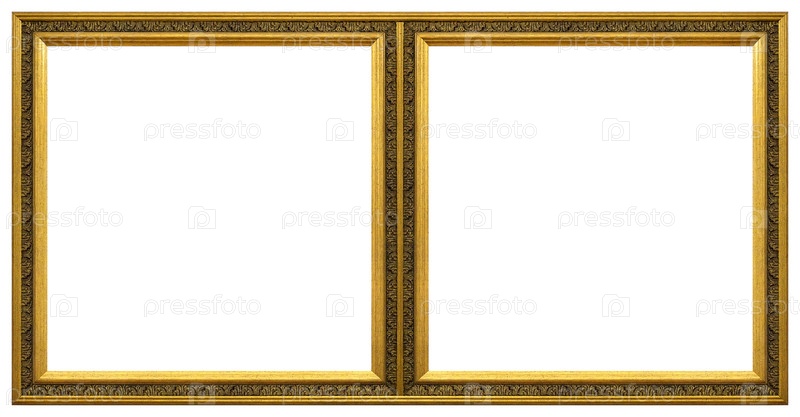 Двойная деревянная рама (диптих) для картин, зеркал или фотографий, изолированных на белом фоне