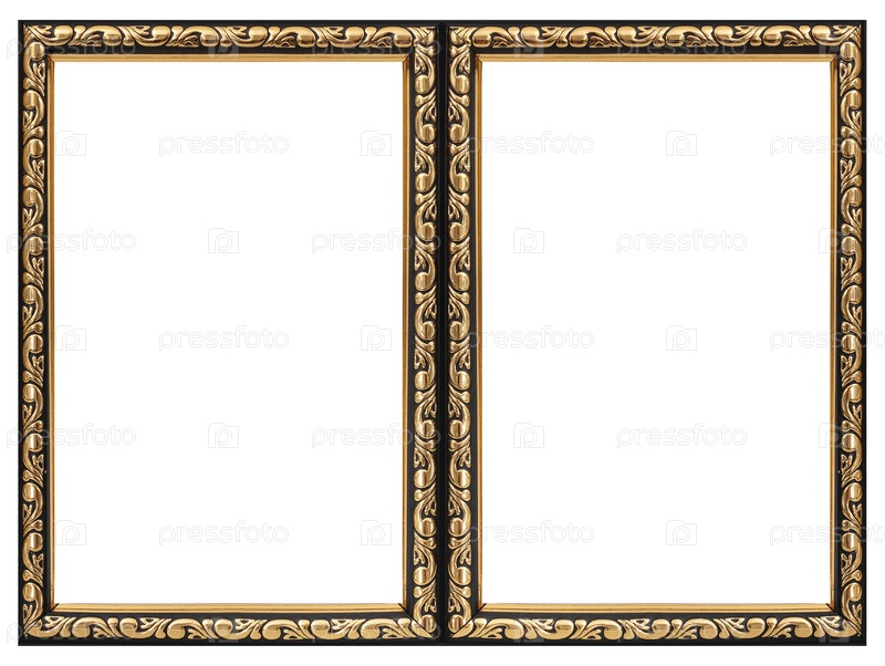 Двойная золотая рама (диптих) для картин, зеркал или фотографий, выделенных на белом фоне