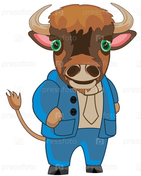 Векторная иллюстрация дикого бизона в костюме и галстуке