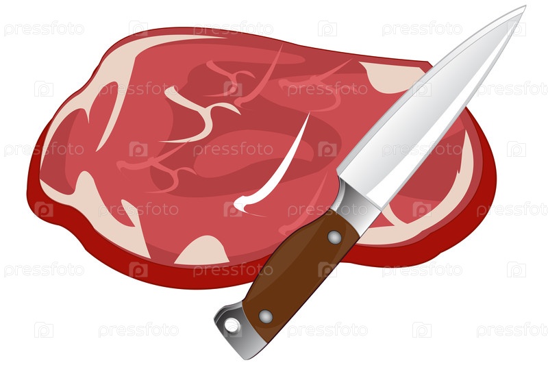 Кусок сырого мяса и векторная иллюстрация ножа
