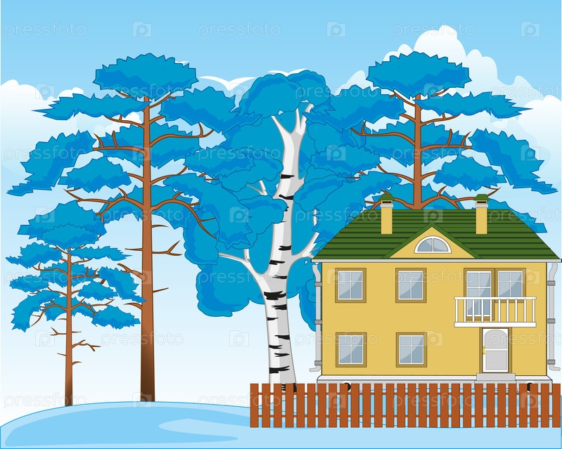 Ландшафт зимнего леса и небольшое удобное здание