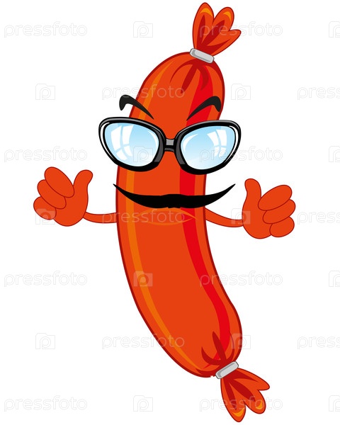 Продукт мультфильма с колбасой на белом фоне изолирован