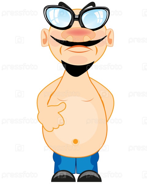 Толстый мужчина с большой комиксовой иллюстрацией желудка