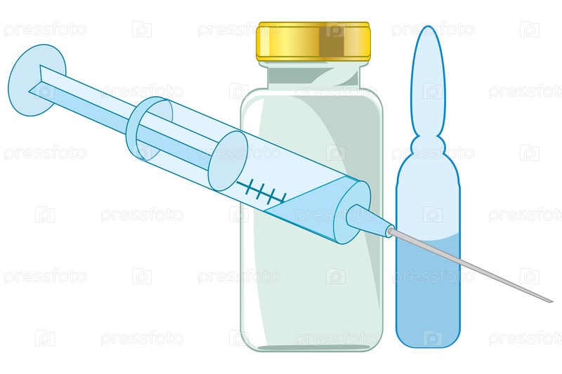 Шприц с лекарством и ампулами на белом фоне изолирован