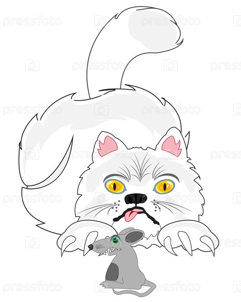 Векторная иллюстрация охоты кошки на мультфильме мыши
